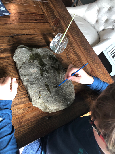All we did was choose some flat landscaping rocks. (I borrowed one from my in-laws!) I just get enough materials to be used for 2 or 3 kids in a station. But you could certainly get one stone for each kid and do it as a large group activity.
