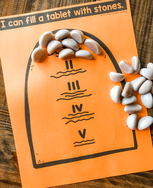 During our 10 commandments unit, we fill a tablet with stones!