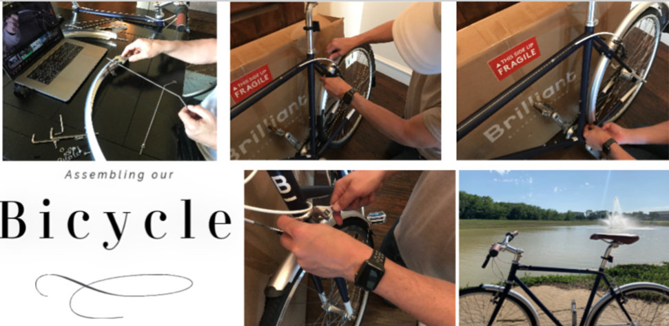They produced helpful instructional videos to watch online and help assemble the bicycles. We were so excited for our bicycle to arrive that we watched the instructional videos before it arrived. When it arrived, we were able to quickly and easily assemble it. For instance, here is a quick collage that shows my husband assembling a tire, pedals, seat, and reflectors.