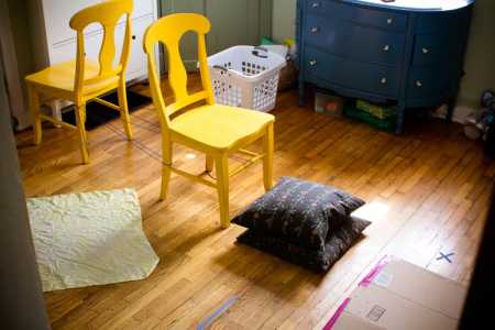 Also, use materials you already have in your house. Masking tape makes a great balance beam, colored paper makes great jumping spots and tables make great tunnels!