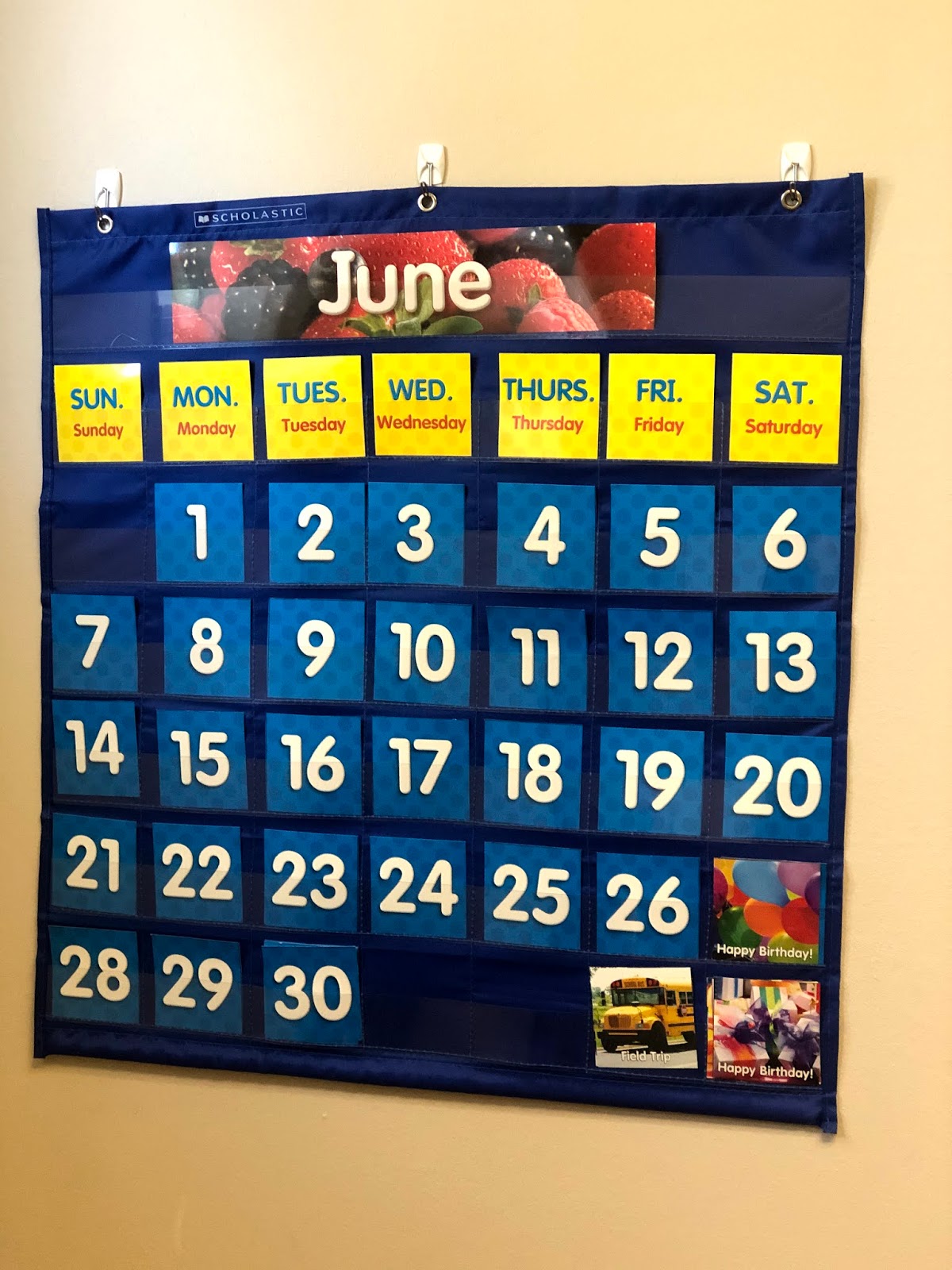 Calendar Skills! When my students come in the room, the first thing we talk about is the calendar. Understanding how a calendar works is a great life skill and something they will use in school. We name the days of the week and the month (there are great youtube songs to help teach this!) This is a great way to also work on number recognition and counting. Talk about what day it is today, what day tomorrow will be, and what day was yesterday. Any special events coming up? Make those down, too! I bought this pocket chart calendar from amazon.