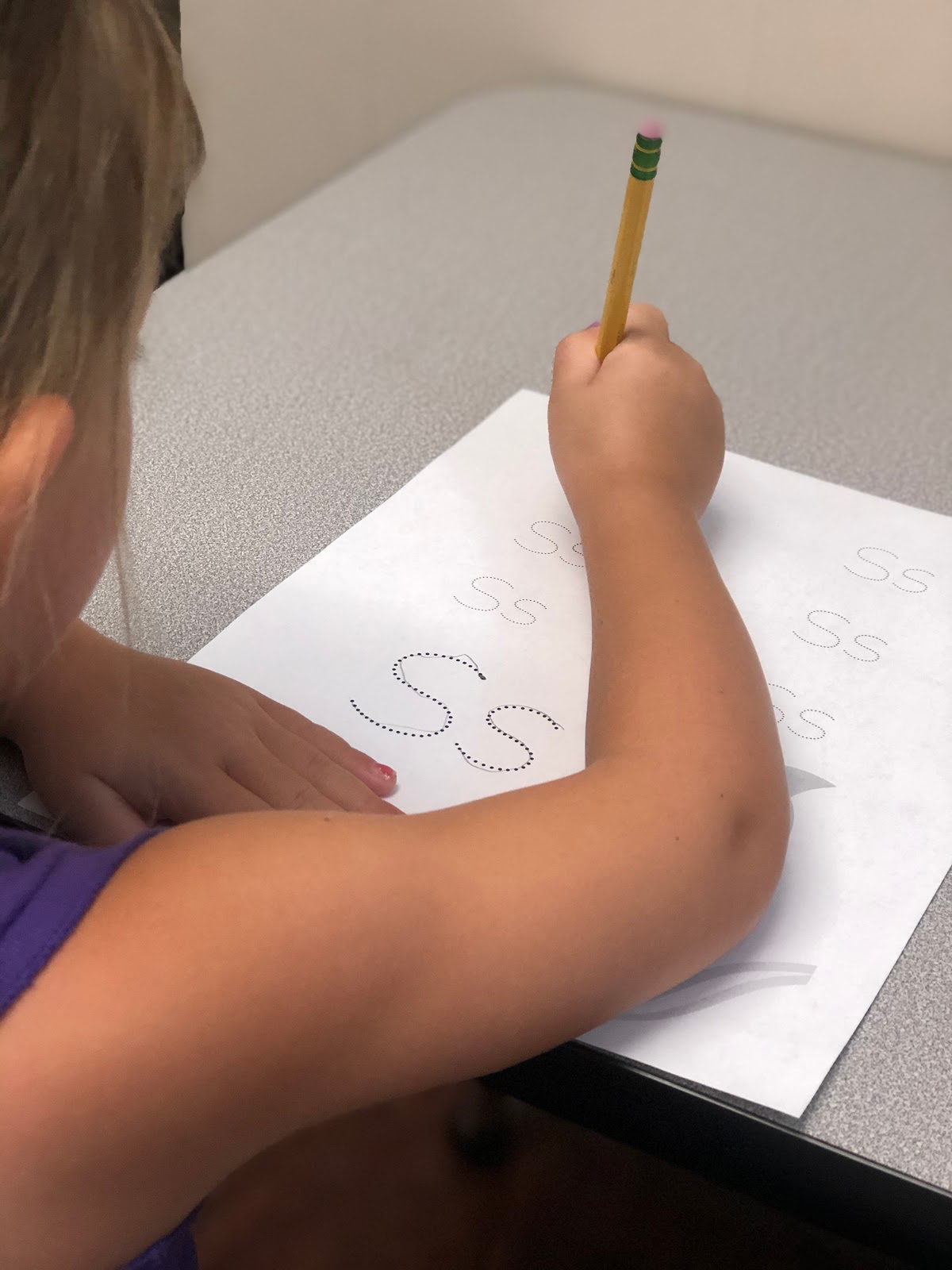 Fine Motor! Writing and cutting are important skills your students and children should have when entering kindergarten. Have your student practice writing his/her name. If you're working on a specific speech sound, have them practice writing that letter. (I like to use a yellow highlighter and have the child trace over what I wrote for practice in the beginning.)Talk about the letters and what sounds they make. Cutting and ripping paper are also good motor skills.