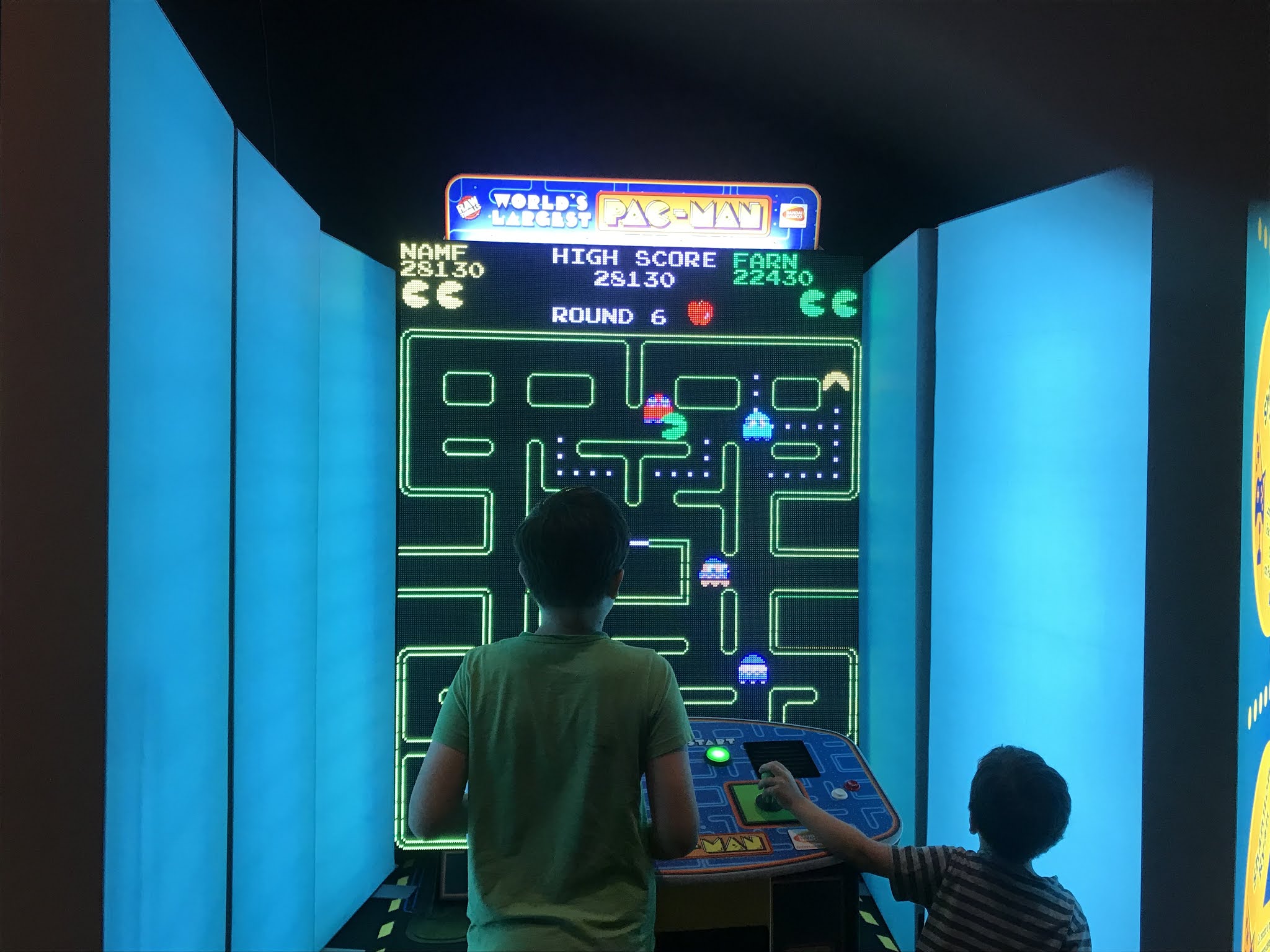 As I mentioned earlier, I don't want to spoil too many surprises, so I asked my family members to each choose their favorite competition for me to share with all of you. My oldest son chose the World's Largest Pac-Man game. He won third place for the day. My preschooler didn't place at the top, but he still had a blast!