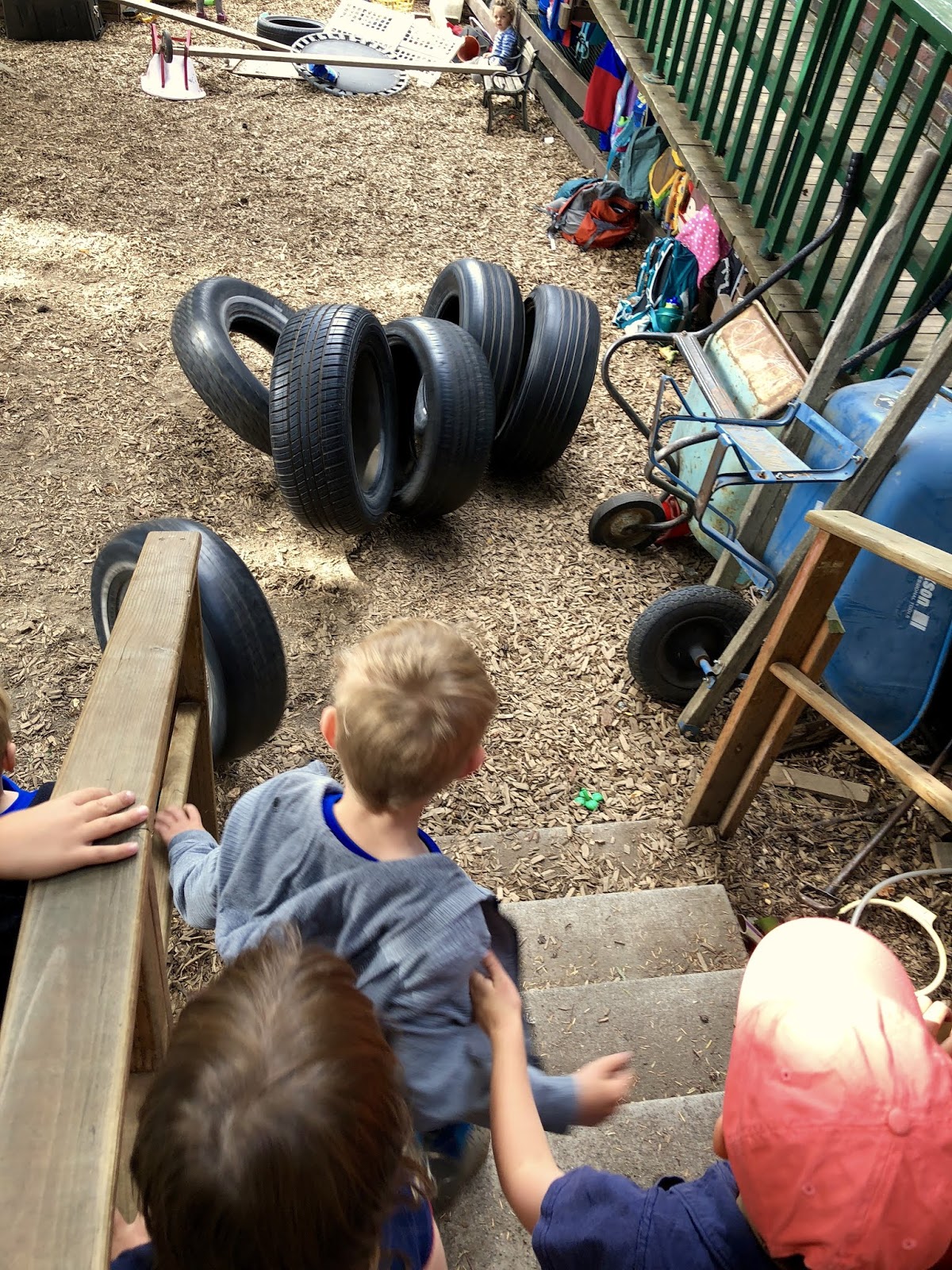 Play is a pure good and the moment we as adults forget that is the moment we taint it with our good intentions, rendering it something else, something lesser. That's why we're at our best as educators when we can be like the children and allow ourselves to be content with their games. It's the rolling of tires up and down hills in the company of others that matters. Our job is to provide the hill and the tires. The rest is a happy accident.