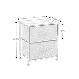 Sturdy durable premium quality fabric drawer with easy to pull handle firm steel frame with strong mdf top that contribute to its sturdy construction which ensure durability and resistance against wear and tear over time Smart storage wood top provides hard surface for displaying lamps alarm clocks books eyeglasses and more Nightstand style dresser drawer organizer are great for storage This chest of drawers is great for closets bedrooms nurseries playrooms entryways and more