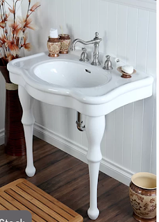 What else? Well, I'm going to use the same sink as the last bungalow. I love its graceful curves and antique styling. But since it doesn't provide any storage space, I'll include a built in cabinet for lots of storage.