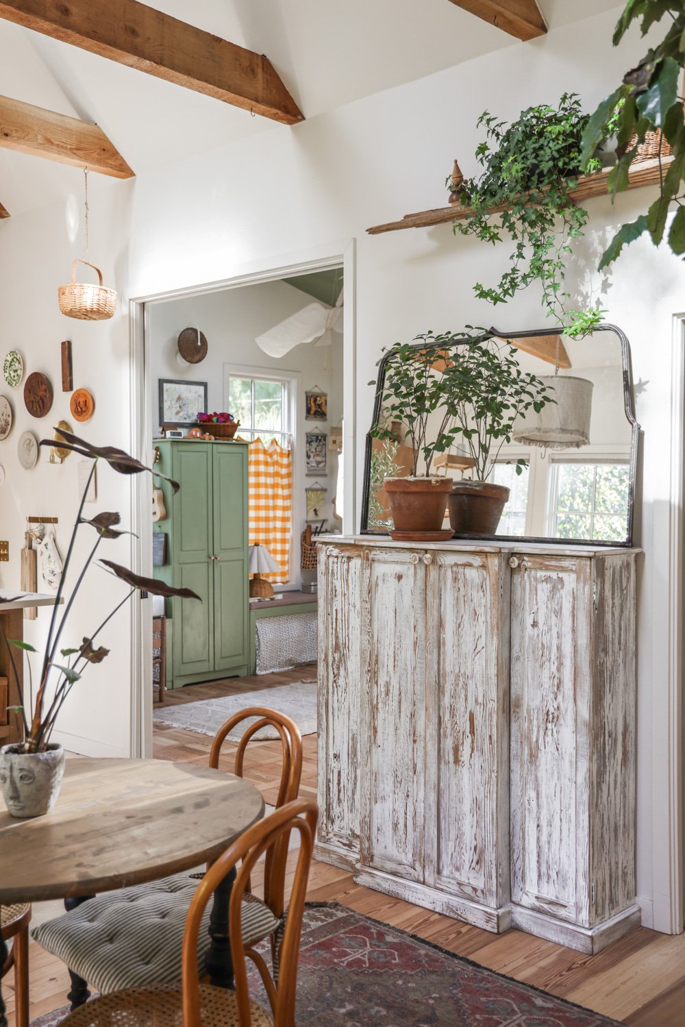 One of the first things that’s visible upon entering our cottage is a tall, custom cabinet made from reclaimed wood: