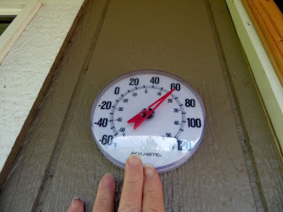 The outdoor thermometer. Someone fastened it at least six feet up on the wall. We haven't used this thermometer because neither of us can see it easily. (Yes, we plan to lower it.)
