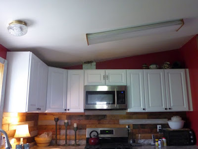 Our eventual goal for the kitchen is to remove all the upper cabinets (Don can use them in the shop) and install a shelf, at a convenient reach for me to reach, around the entire perimeter of the kitchen walls above the counter. Just think – it would give us room for artwork on the walls!