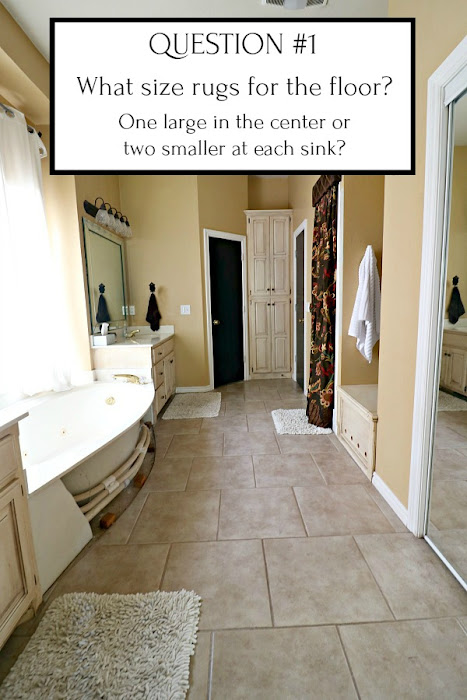Another option is two smaller rugs, one in front of each vanity. Our vanities are different sizes so that makes it a little tricky. This would be my second choice, but I've never figured out how to make one rug big work. That's why I need your help! Anyone else have the same issue? Any solutions?