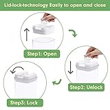 lock mechanism easy cleaing once the ring on the lid is pushed down the silicone seal inside the lid will expand to seal the jar creating complete airtightness Pop the ring back up and it serves as a handle to lift the lid Provides maximum freshness and prolonged food storageSimply remove the silicone attached along the lids of each container and wash with soap and rinse with waterEasy to clean and dishwasher safe removing lids marvelous kitchent organization with stackable design the food storage containers will make the organization more efficient than ever As the cereal containers are made by clear plastic you can identify the contents without opening them
