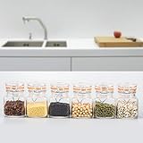 Seethrough design easily see whats in the glass jar at a glance There is no need to guess whats inside your canisters sets any more since crystal clear glass allows for easy monitoring and identification Set of 4 canisters three multiuse sizes including 34oz 17oz 9oz x 2 better range of sizes where all the containers have usable spaceThey are also stackable for easy storage Sapcesaving and make your kitchen tidy and clean