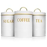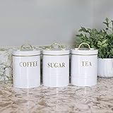 CulinaryGames - Unlike other coffee tea sugar container set that are too small for your needs our 3 farmhouse kitchen canisters is specifically designed to contain more with out taking much of your countertop space While being a great storage it will keep your content fresh and dry save you space keep your kitchen clean and organized The perfect present for foodies Packaged in a charming gift box this sugar and coffee container set makes a great housewarming wedding or anniversary gift Theyll love using their canister for their home storage space counter decoration keeping their tea sugar coffee fresh When you order our kitchen tool try our giftfriendly buy one get one 5 off offer stock up now on the ideal coffee containers set your friends and family will love Great for santa birthday or christmas gifts