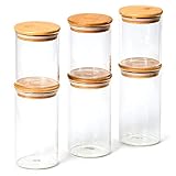 Convenient attractive 6 piece canister set in clear glass to find your kitchen goods quick and easy The bamboo wooden lid and translucent glass offer minimalist and modern design that blends in perfectly with your appliances and kitchen decor