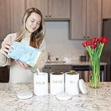 Elegant kitchen canisters farmhouse You will have alot of compliments from your familly and friends Our white canister set and gold rustic farmhouse coffee sugar tea canister set are designited to blend beautifully in your kitchen and higlith your uniquely made design You will love it in any kitchen decor of your choice modern vintage farmhouse country the list goes on You choose your stile and we serve you